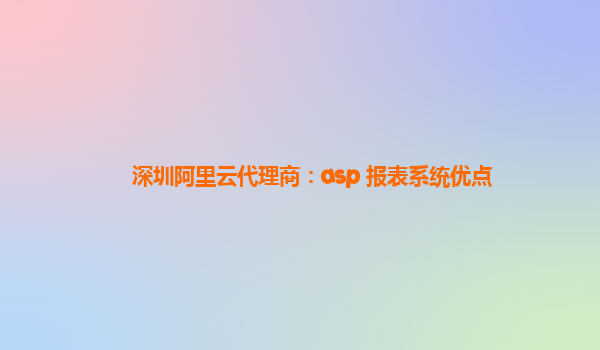 2025-03-03深圳阿里云代理商:ASP报表系统优点引言:现代企业需要高效、稳定的报表系统在数字化时代,企业对数据的依赖越来越高,尤其是报表系统,它在企业决策中扮演着重要角色。为了保证报表系统的稳定性和安全性,许多公司...
