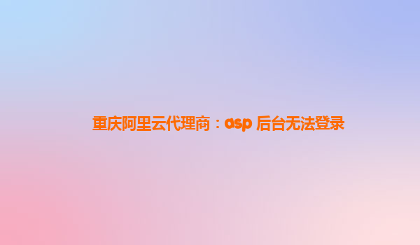 2025-02-28重庆阿里云代理商:ASP后台无法登录问题解决方案 一、问题概述:ASP后台无法登录 随着信息化的快速发展,越来越多的企业和个人选择搭建自己的网络平台。作为阿里云的代理商,许多客户在部署网站或应用时,可能会遇...