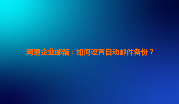 如何设置网易企业邮箱自动邮件备份