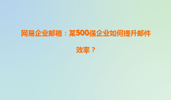 网易企业邮箱:某500强企业如何提升邮件效率?