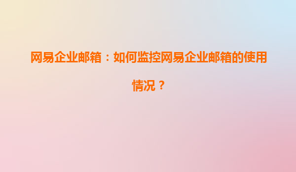 以上是关于如何监控网易企业邮箱使用情况的完整文章,按照标题要求进行的详细阐述,涵盖了网易企业邮箱的优势和具体的监控方法,最后也给出了总结。