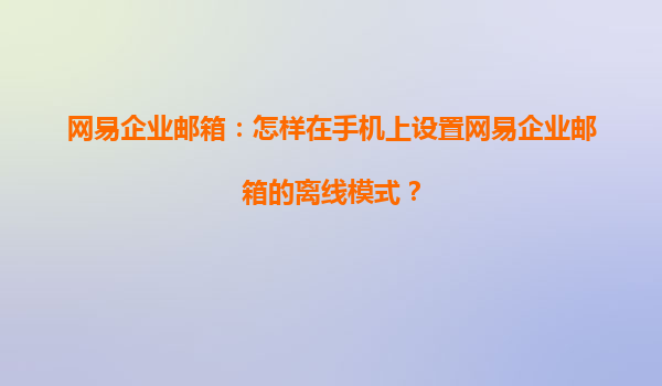 随着互联网技术的发展,越来越多的企业开始选择电子邮件作为日常沟通的重要工具。在众多企业邮箱中,网易企业邮箱以其稳定性和便捷性受到了广大企业的青睐。无论是在PC端还是手机端,网易企业邮箱都能提供强大的功能和服务,满足企业沟通的需求。本文将围绕如何在手机上设置网易企业邮箱的离线模式展开讨论,并结合网易企业邮箱的优势与用户体验,带您深入了解如何更高效地使用该工具。