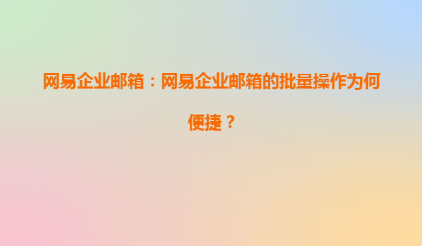 网易企业邮箱:网易企业邮箱的批量操作为何便捷?