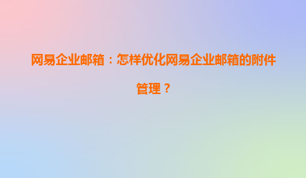 网易企业邮箱:怎样优化网易企业邮箱的附件管理?