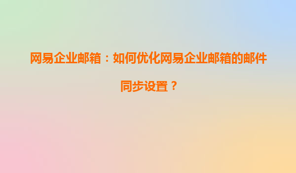 网易企业邮箱:如何优化网易企业邮箱的邮件同步设置?