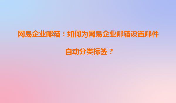 在高效办公的时代,邮件管理已成为企业日常运营的重要环节。网易企业邮箱凭借其强大的功能和人性化设计,为企业用户提供了便捷高效的邮件管理解决方案。其中,邮件自动分类标签功能更是让邮件处理变得轻松自如。