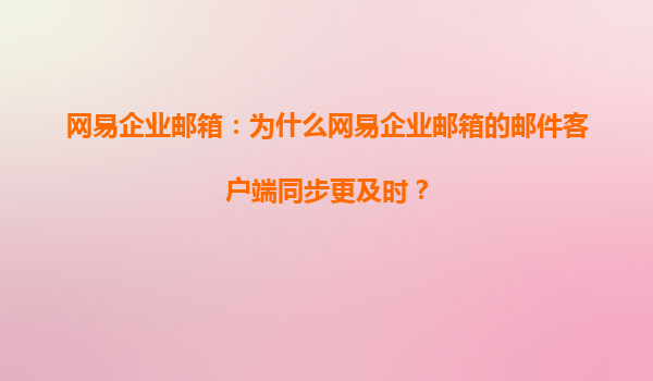 网易企业邮箱:为什么网易企业邮箱的邮件客户端同步更及时?