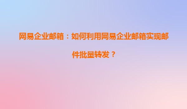 网易企业邮箱:如何利用网易企业邮箱实现邮件批量转发?