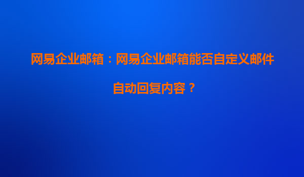 网易企业邮箱作为国内领先的企业级邮件服务提供商,凭借其稳定、安全、高效的特性,赢得了众多企业的信赖。它不仅提供了基础的邮件收发功能,还集成了丰富的管理工具和个性化设置,能够满足不同规模企业的多样化需求。其中,自定义邮件自动回复功能便是其亮点之一。