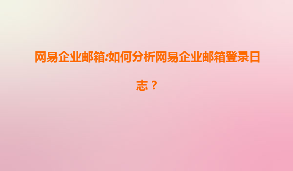 网易企业邮箱:如何分析网易企业邮箱登录日志?