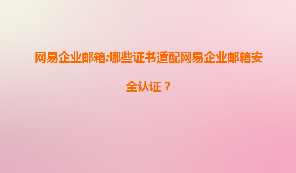 网易企业邮箱:哪些证书适配网易企业邮箱安全认证?
