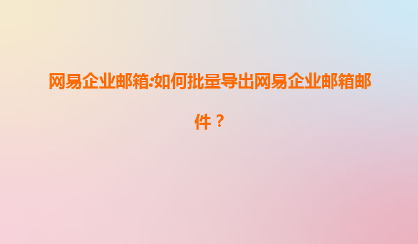 网易企业邮箱:高效管理,批量导出邮件更便捷