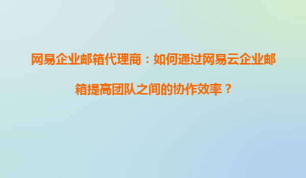 网易企业邮箱代理商:如何通过网易云企业邮箱提高团队之间的协作效率?