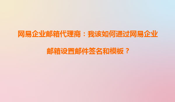 网易企业邮箱代理商指南:如何设置邮件签名和模板