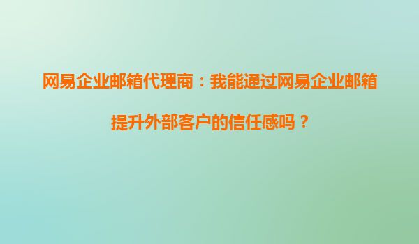网易企业邮箱代理商:我能通过网易企业邮箱提升外部客户的信任感吗?