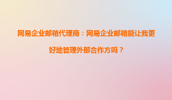 网易企业邮箱代理商:网易企业邮箱能让我更好地管理外部合作方吗?