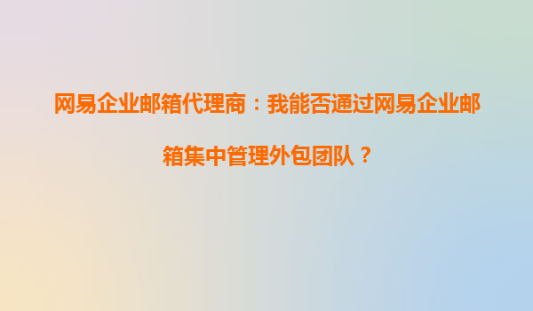 网易企业邮箱代理商:我能否通过网易企业邮箱集中管理外包团队?
