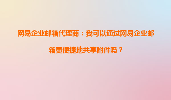 网易企业邮箱代理商:我可以通过网易企业邮箱更便捷地共享附件吗?