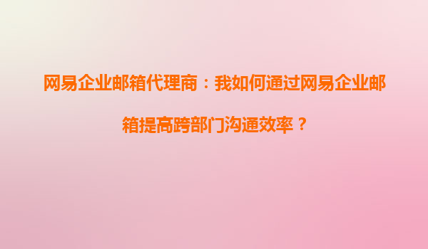 网易企业邮箱代理商:我如何通过网易企业邮箱提高跨部门沟通效率?