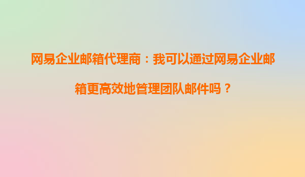 网易企业邮箱代理商:如何通过网易企业邮箱更高效地管理团队邮件?