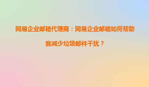网易企业邮箱代理商:网易企业邮箱如何帮助我减少垃圾邮件干扰?