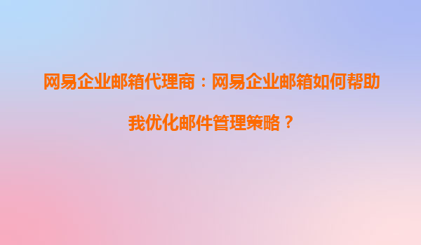 网易企业邮箱代理商:网易企业邮箱如何帮助我优化邮件管理策略?