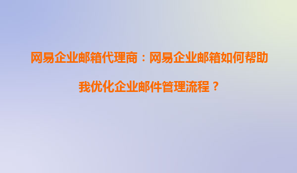 网易企业邮箱代理商:网易企业邮箱如何帮助我优化企业邮件管理流程?