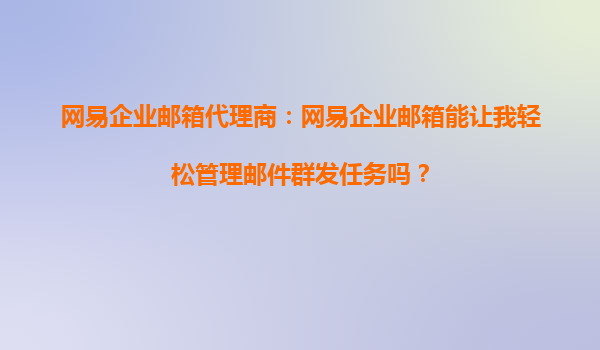 网易企业邮箱代理商:网易企业邮箱能让我轻松管理邮件群发任务吗?