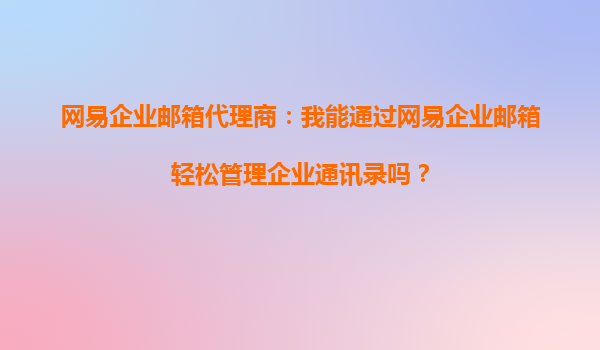 网易企业邮箱代理商:我能通过网易企业邮箱轻松管理企业通讯录吗?