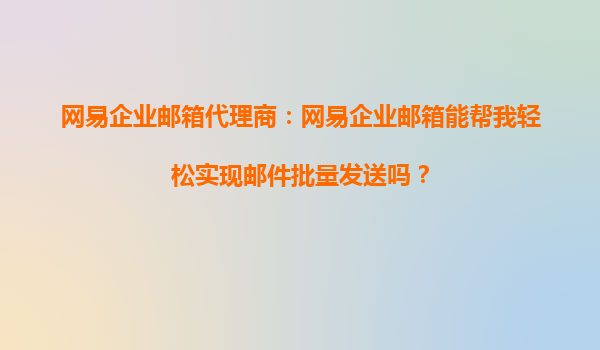 网易企业邮箱代理商:网易企业邮箱能帮我轻松实现邮件批量发送吗?