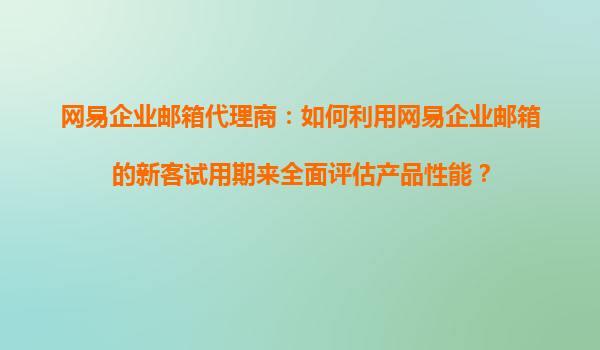 网易企业邮箱代理商:如何利用网易企业邮箱的新客试用期来全面评估产品性能?