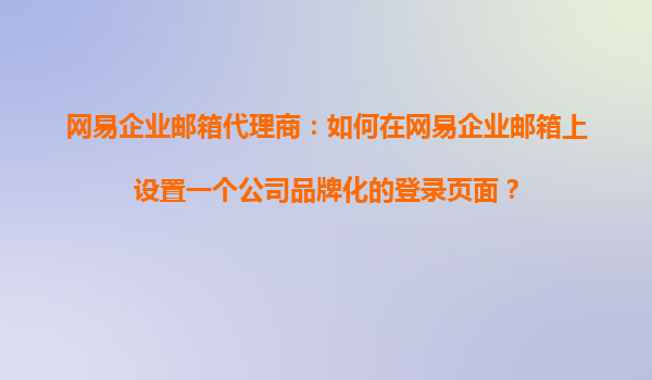 网易企业邮箱代理商:如何在网易企业邮箱上设置一个公司品牌化的登录页面?
