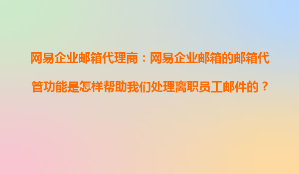 网易企业邮箱代理商:网易企业邮箱的邮箱代管功能如何帮助我们处理离职员工邮件?