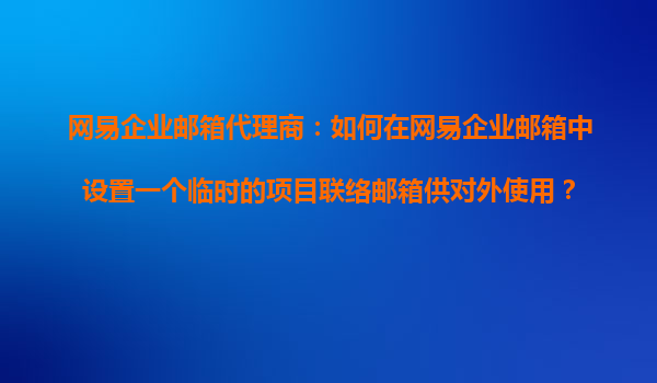 网易企业邮箱代理商:如何在网易企业邮箱中设置一个临时的项目联络邮箱供对外使用?