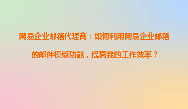 网易企业邮箱代理商:如何利用网易企业邮箱的邮件模板功能提高工作效率