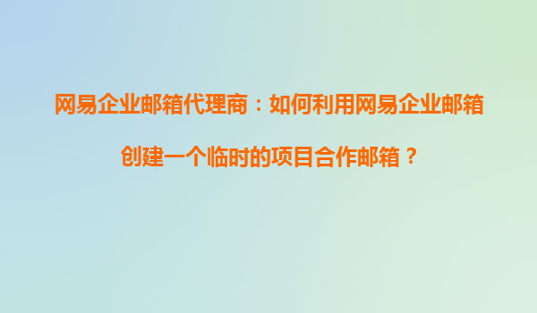 网易企业邮箱代理商:如何利用网易企业邮箱创建一个临时的项目合作邮箱?