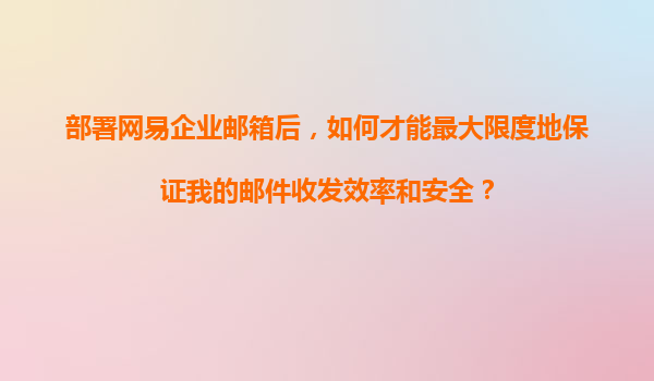 部署网易企业邮箱后,如何最大限度地保证邮件收发效率和安全?