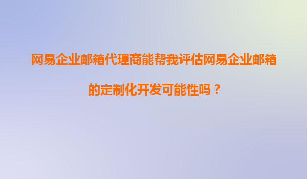 网易企业邮箱代理商能帮我评估网易企业邮箱的定制化开发可能性吗?