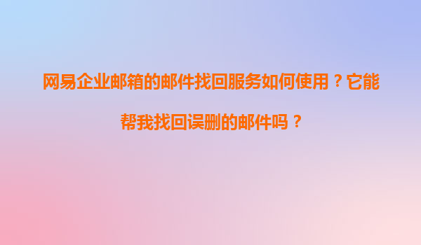 网易企业邮箱邮件找回服务详解及误删邮件恢复指南