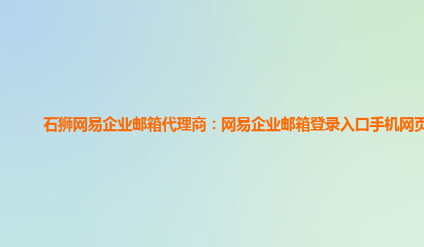 网易企业邮箱代理商:网易企业邮箱登录入口手机网页版