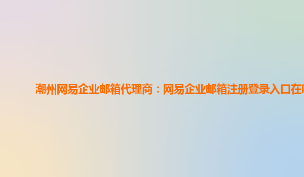 潮州网易企业邮箱代理商:网易企业邮箱注册登录入口在哪