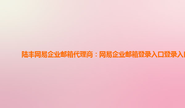 陆丰网易企业邮箱代理商:网易企业邮箱登录入口