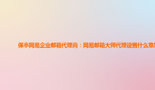 保亭网易企业邮箱代理商:网易邮箱大师代理设置什么意思