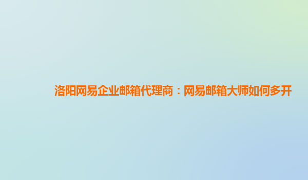 洛阳网易企业邮箱代理商:网易邮箱大师如何多开