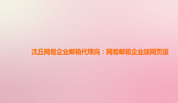 沈丘网易企业邮箱代理商:网易邮箱企业版网页版