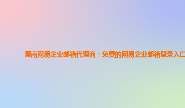 灌南网易企业邮箱代理商:免费的网易企业邮箱登录入口