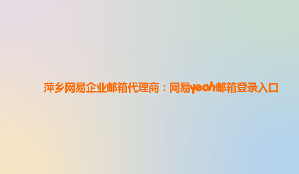萍乡网易企业邮箱代理商:网易yeah邮箱登录入口