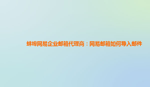 蚌埠网易企业邮箱代理商:网易邮箱如何导入邮件