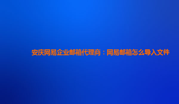 安庆网易企业邮箱代理商:网易邮箱怎么导入文件