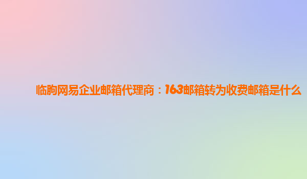 临朐网易企业邮箱代理商:163邮箱转为收费邮箱是什么